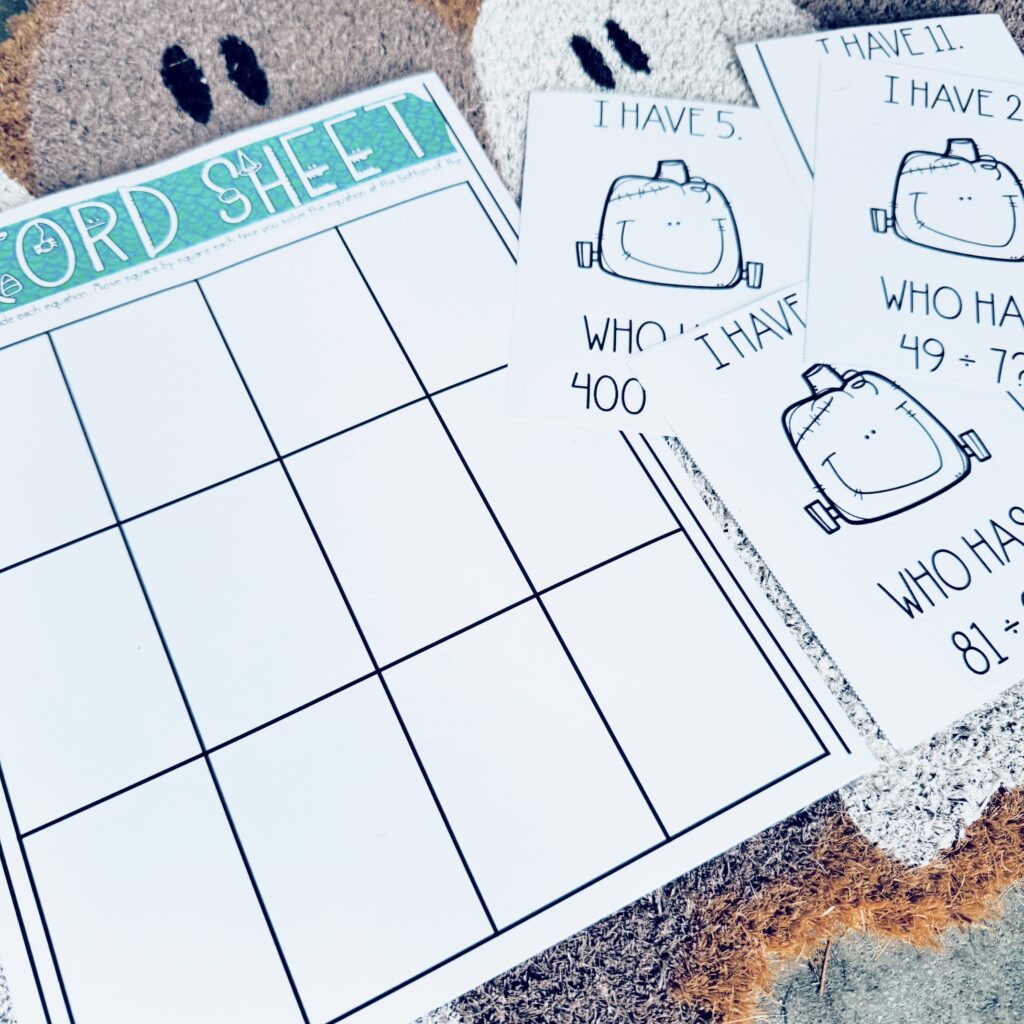 Grab these FREE I Have, Who Has Division cards with a Halloween-themed background to get your students excited about practicing simple facts. I hope you enjoy!